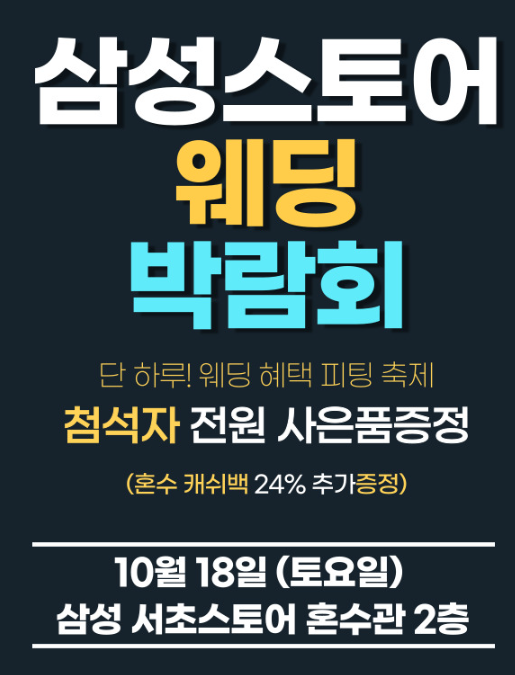 혼수, 이제 여기서 한 번에 끝내세요. 삼성 스토어 웨딩박람회에서 패키지·사은·설치까지 일괄 해결!